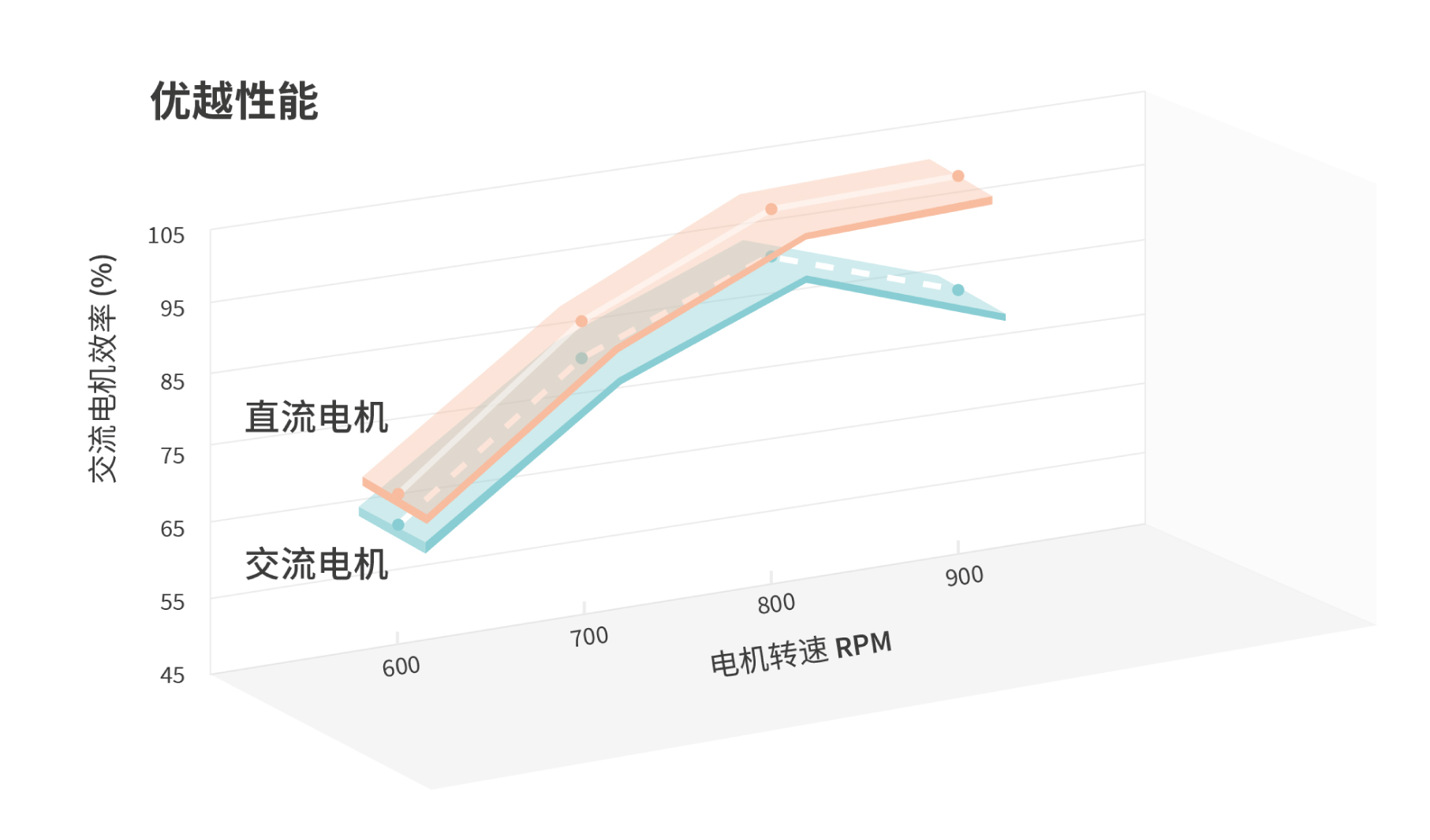 直流電源系統使運行噪音更低,比交流電機的效率提升10% 以上。