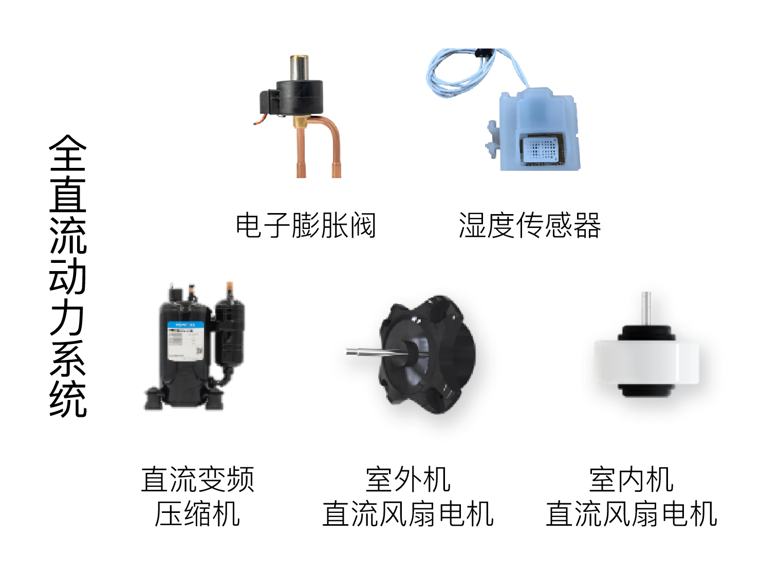 airHome家用系列配備了室內機直流風扇電機、室外機直流風扇電機和直流變頻壓縮機,組成一個完整的直流動力系統。