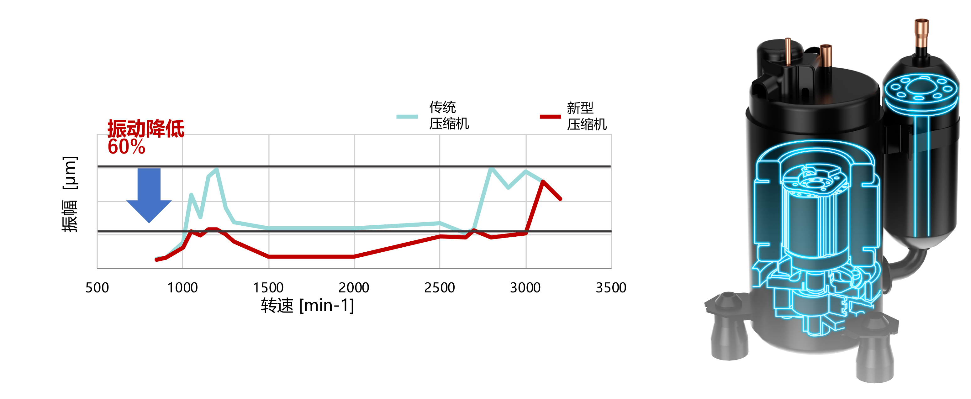 激光焊接技術、供油強化技術、控油抑制技術的應用使得此款升級設計的轉子式壓縮機具有更高的效率和可靠性。