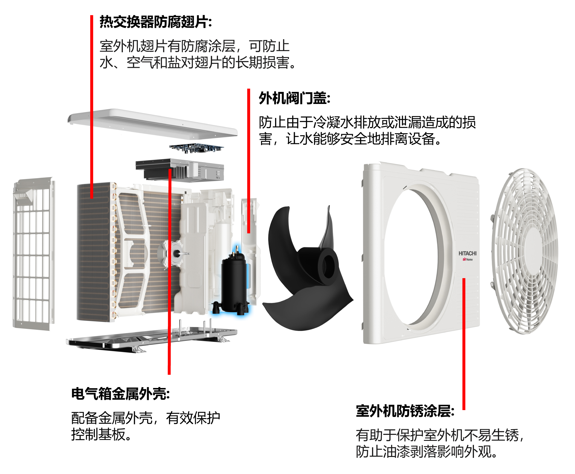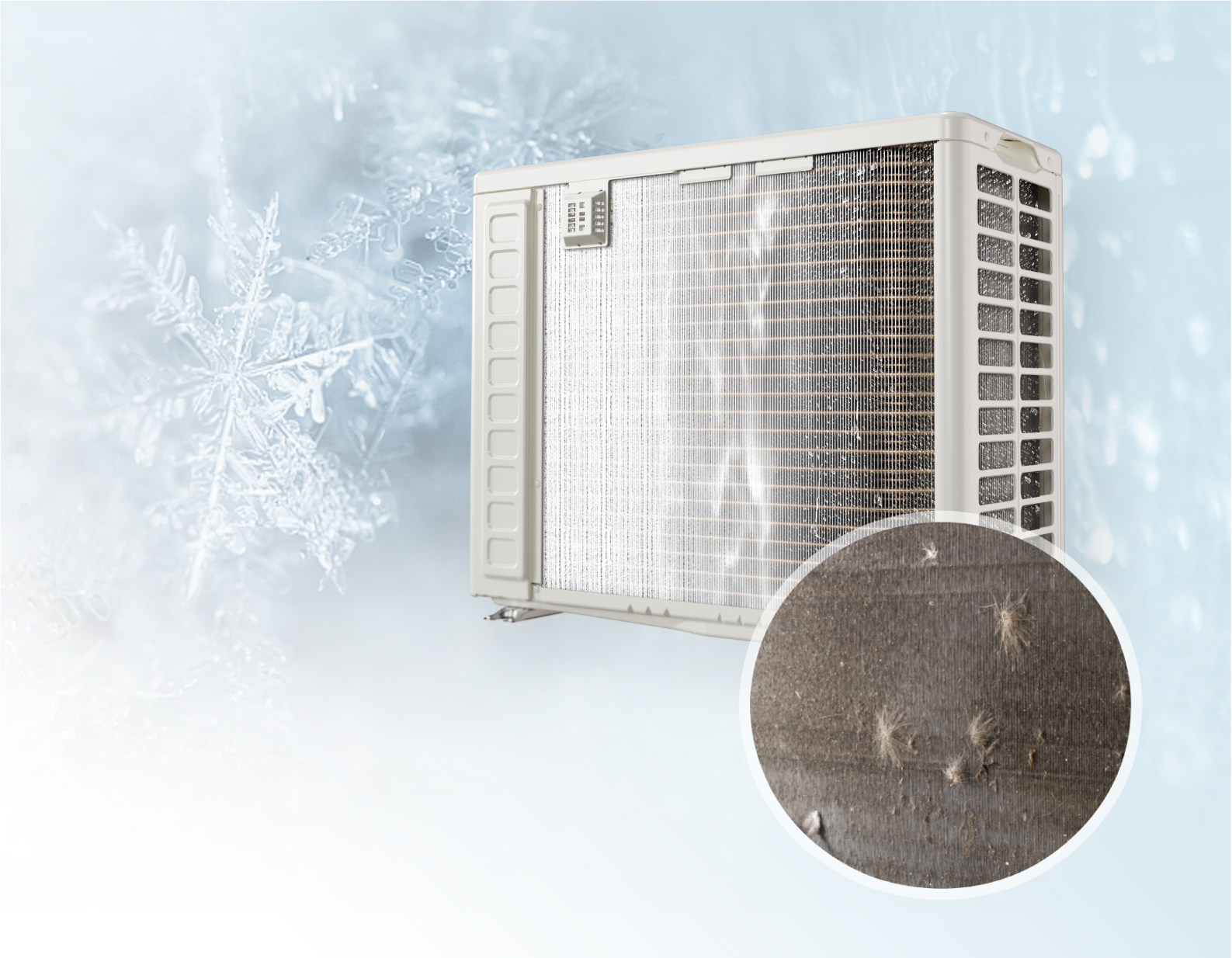 在常年的使用中,灰塵和污垢會積累在散熱器上,污垢積累到一定程度后,會影響外機的散熱使用。通過日立凍結洗凈技術,快速凍結設備內的潮濕空氣,利用溶解后的水流完成清洗,幫助有效去除室外機熱交換器中的灰塵和污垢。