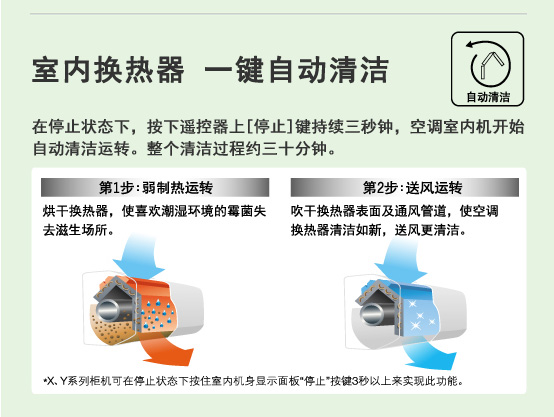RAS/C-50NVNX完全直流變頻 NX series2匹新能效2級功能介紹凍結洗凈 清潔新革命 呼吸更清新 急速冷卻空氣中水分,在熱交換器周圍形成凝霜并鎖住污垢灰塵,迅速溶解化水后將污垢...